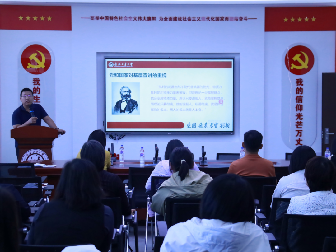 楚洪涛老师汇报了暑期参加中宣部全国基层宣讲骨干培训和复旦大学高校思政教师培训的收获。他结合培训内容与实践案例,分享了在基层宣讲内容设计、形式创新与实效提升方面的思考,并介绍了复旦大学在思政课改革创新、教师能力提升及校园文化融合上的经验做法,为色播平台